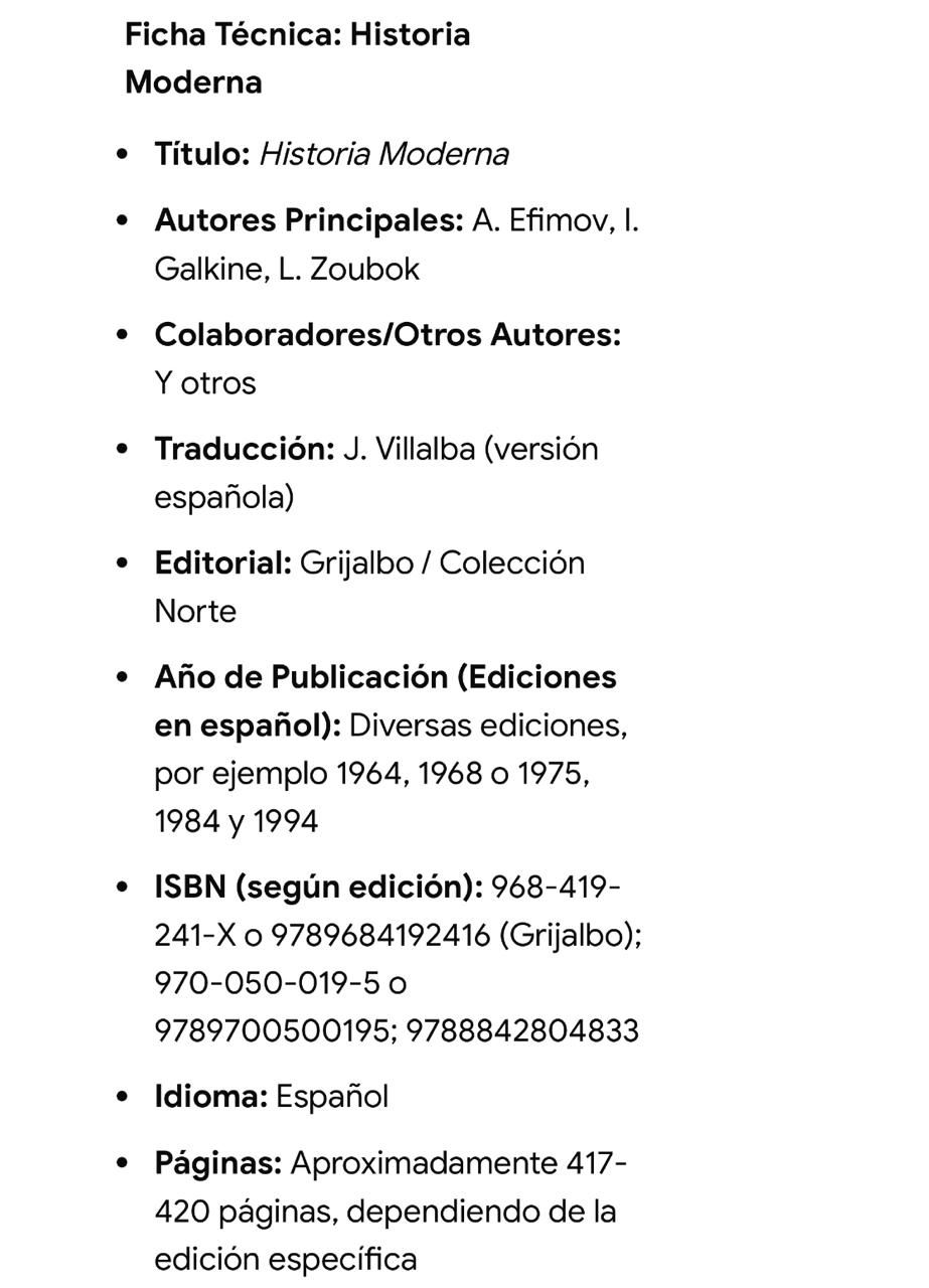 HISTORIA MODERNA DE 1642 A 1918 de A. EFIMOV, I. GALKINE.
